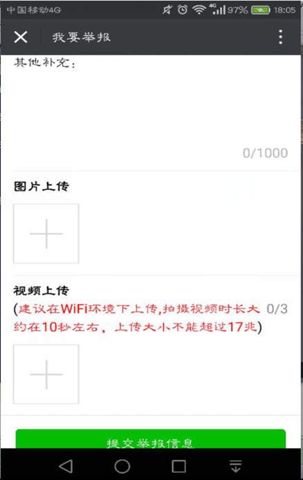證據材料實時記錄,用戶可以通過文字描述、現場拍照、拍攝視頻多種方式實時、準確記錄污染現場的狀況,用戶也可以在投訴舉報之后繼續對案件補充材料,為后續環保部門調查、處理提供有力的證據。
